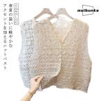 ベスト 春夏 フェミニン クロシェ編み おしゃれ Vネック レディース 透かし編み プルオーバー かぎ編み ニットベスト 無地 レイヤード きれいめ