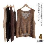 トップス ベスト 透かし編み 透かし編み ベスト レディース Vネック おしゃれ かぎ編み 薄手 カジュアル プルオーバー 春夏 無地 レイヤード き
