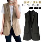ジレ ベスト きれいめ 夏 ミドル丈 春 テーラードベスト ジレ 前開き Vネック ノースリーブ 秋 ロング スーツ 体型カバー オフィス レディース