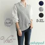 ニット ベスト レディース チョッキ トップス 春 秋 ノースリーブ 学生 通勤 大人 リブ編み スリット シンプル 無地 OL ゆったり 30代 40代 50代 50代