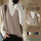 ニットベスト ベスト レディース チョッキ トップス ノースリーブ プルオーバー ゆったり Vネック ジレー セーター 薄手 秋コーデ カジュアル 着痩せ