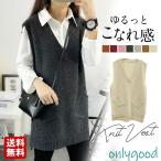 ニットベスト レディース ロング トップス チョッキ Vネック ゆったり プルオーバー ベスト ジレー セーター 無地 秋コーデ カジュアル 重ね着