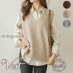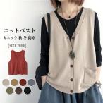 ニットベスト レディース ベスト Vネック トップス ノースリーブ 秋 冬 春 前開き ゆったり シンプル 無地 羽織 スクールニット