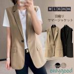 ベスト レディース ジレ ノースリーブ サマージャケット 袖なし 春 夏 ベスト ジャケット きれいめ トップス 羽織り チョッキ 大きいサイズ