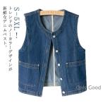 デニムベスト レディース 春 夏 秋 デニム ジレ ショート丈 ノーカラー ノースリーブ トップス 無地 ジーンズベスト 春秋 大きいサイズ 体型カバ