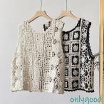ベスト レディース ビスチェ 春夏 サマーニット レース おしゃれ カギ編み ニットベスト レイヤード