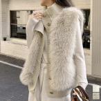ファーベスト レディース 暖かい リブニットジレ 袖なしファーカーディガン 秋冬 ニットアウター 羽織り着やせ