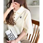 ポロシャツ ポロ 抜け感のあるゆったりシルエット。胸刺繍で上品さをプラス♪胸刺繍ルーズポロニットプルオーバー(半袖) レディース