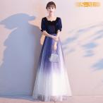 ドレス 大人 ピアノ 発表会 ロング 演奏会 結婚式 母親 ワンピース ネイビー 半袖 パーティードレス イブニングドレス フォーマル