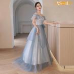 ドレス 大人 ピアノ 発表会 ロング 演奏会 結婚式 ワンピース 水色 半袖 パーティードレス イブニングドレス プリンセスドレス