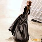 ドレス 大人 ピアノ 発表会 ロング演奏会 結婚式 黒 ワンピース 長袖 パーティードレス イブニングドレス フォーマル
