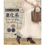 プリーツスカート ロング 白 グレー 黒 ブラウン ベージュ コーデ 40代 50代 60代 チュール付き リバーシブル