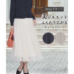 チュールプリーツスカート ロング 白 グレー 黒 ブラウン ベージュ コーデ 40代 50代 60代 チュール付き リバーシブル