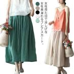 リネンロングスカート マキシスカート ウエストゴム ロング マキシ丈 スカート 春夏 秋 綿麻 無地 ミモレ丈 ミモレスカート 送料無料