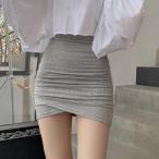既納タイトスカートミニ丈 ハイウエスト ペンシルスカート 無地 薄手カットソー ウエストゴム レディース ボトムス ギャザー セクシースカート 春 夏 通勤 OL