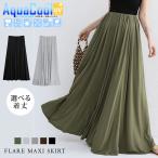 ロングスカート レディース 春 夏 春夏 黒 スカート UVカット Aライン フレア ロンスカ マキシ ブラック カーキ ブラウン グレー ウエストゴム
