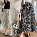 花柄 スカート レディース 春 夏 春夏 黒 ロング マキシ ボタニカル柄 フレアスカート ミディアム Aライン ミモレスカート ウエストゴム 体型カバー ミモレ丈