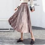 プリーツスカート ロングスカート レディース フレアスカートミモレ丈 春 ウエストゴム