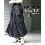 スカート リボン ドレープ 艶スカートマキシ丈 ボトムス ツヤ 艶スカート ロング丈 フレア ゴム