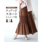 ティアードスカート シャーリングスカート ティアード シャーリング ウエストゴム グレー ホワイト ブラウン