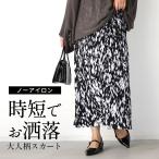 スカート 柄スカート ノーアイロン 柄スカート ウエストゴム 時短 柔らか素材 お洒落 大人柄 シワにならない