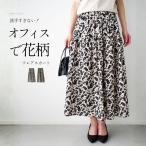 スカート ロングスカート フレアスカート リーフ柄 カジュアル ゆったり 体型カバー 上品仕上げ 大人の柄アイテム