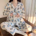 ルームウェア レディース パジャマ 部屋着 上下セット セットアップ 長袖 春 夏 秋 かわいい 可愛い おしゃれ 前開き 薄手 修学旅行 入院 産後 旅行 外出 綿