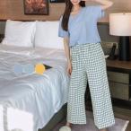 レディース ルームウェア 長ズボン 下のみ パジャマ 部屋着 ゆったり シンプル チェック コットン100% ウエストゴム ポケット付き 薄手 春 夏 秋