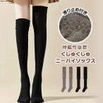 靴下 ソックス レディース ニーハイ 黒 綿混 ルーズソックス レッグウォーマー 膝 防寒 冬 暖かい あったか くしゅくしゅ おしゃれ
