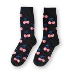 レディース 靴下 チェリー ソックス ブラック オシャレ かわいい さくらんぼ 総柄 くつ下 メンズ