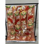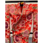 貸衣装処分品 色打掛 豪華織物打掛 赤 車輪と菊模様 八重重ね