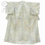 リサイクル着物 紬 中古 単衣 正絹 仕立て上がり 白系 幾何学文様 rr0171b