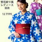 浴衣 単品【お仕立て上がりレディース浴衣】雪花絞り風レディース浴衣単品 綿麻 大人の浴衣 古典柄 青 水色 黄色 緑 紫