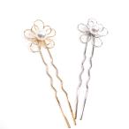かんざし 簪 パール フラワー 花 二本足 2本足 髪飾り 普段使い シンプル ゴールド色 ロジウム色 カジュアル