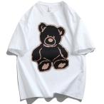Tシャツ 半袖 トップス カットソー メンズ 夏トップス ロゴ クマ くま 綿 tシャツ ティシャツ