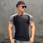 アクティブ tシャツ 半袖 Tシャツ DRYストレッチ メンズ タイト トップス 春 夏 吸汗速乾 配色 トレーニングシャツ スポーツ ジム フィットネスウェア