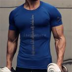 ランニングシャツ スポーツ フィットネス メンズ タイト トップス 半袖 tシャツ ストレッチ 英字プリント 運動 トレーニングウェア 筋トレ ジム 夏 トップス