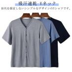 トップス 前開き 吸汗速乾 Tシャツ メンズ Vネック 下着 インナーシャツ ルームウェア 肌着 インナーシャツ 無地 入院 手術 介護用 部屋着 ゆ