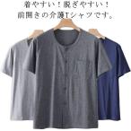 下着 メンズ 半袖 インナーシャツ 手術 インナーシャツ Tシャツ ルームウェア 前開き クールネック 無地 吸汗速乾 入院 肌着 介護用 部屋着 快