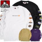 BEN DAVIS Tシャツ ベンデイビス オールドイングリッシュ ロゴ トランプ柄 刺繍 長袖Tシャツ メンズ ロンT ピーチ起毛 BEN-2172
