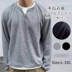ワッフル tシャツ メンズ 長袖 重ね着風レイヤード風 Vネック トップス ゆったり 体型カバー 大きいサイズ おしゃれ きれい