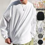 ワッフル tシャツメンズ 長袖tシャツ カットソー 裾スリット 長袖 クルーネック 無地 インナー トップス ゆったり ビッグシ