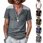 ヘンリーネック tシャツ メンズ 半袖 切り替え ティーシャツ 大きいサイズ