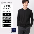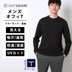 【スーツスクエア】メンズ オフィT Tシャツ 長袖 ウォッシャブル プレーティング天竺 COMMUTECH ブラック