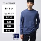 【スーツスクエア】メンズ オフィT モックネックTシャツ 長袖 速乾 ウォッシャブル プレーティング天竺 無地 ネイビー系