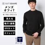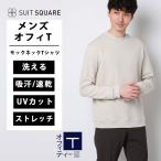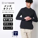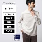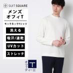 【スーツスクエア】メンズ オフィT モックネックTシャツ 長袖 速乾 ウォッシャブル プレーティング天竺 無地 ホワイト系