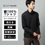【スーツスクエア】メンズ タートルネックTシャツ 長袖 ウォッシャブル 形態安定 シルケットスムースコットン 無地 ブラック系