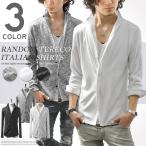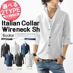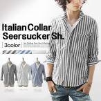 シャツ メンズ 七分袖 七分袖シャツ イタリアンカラー シアサッカー スキッパー 立ち襟 開襟シャツ ストライプ 無地 カジュアル スリム ショート丈