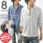 シャツ メンズ 七分袖 七分袖シャツ カプリシャツ プルオーバーシャツ リネンシャツ リネン コットンリネン 綿麻 麻 無地 ストライプ 柄 ショート丈 カジュアル