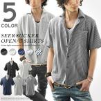 シャツ メンズ 半袖 オープンカラー スキッパー ストライプ シアサッカー パイル ジャガード カジュアル 夏 服 夏服
